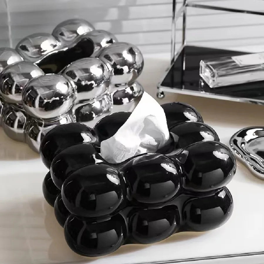 Bringen Sie sowohl Eleganz als auch Organisation in Ihr Zuhause mit diesem Keramik-Taschentuchhalter mit Schublade. Perfekt designt, um Taschentücher, Servietten und Papiertücher aufzubewahren, hält er Ihre Utensilien griffbereit und fügt gleichzeitig eine dekorative Note zu Ihrem Esstisch, Ihrer Küche oder Ihrem Wohnzimmer hinzu.